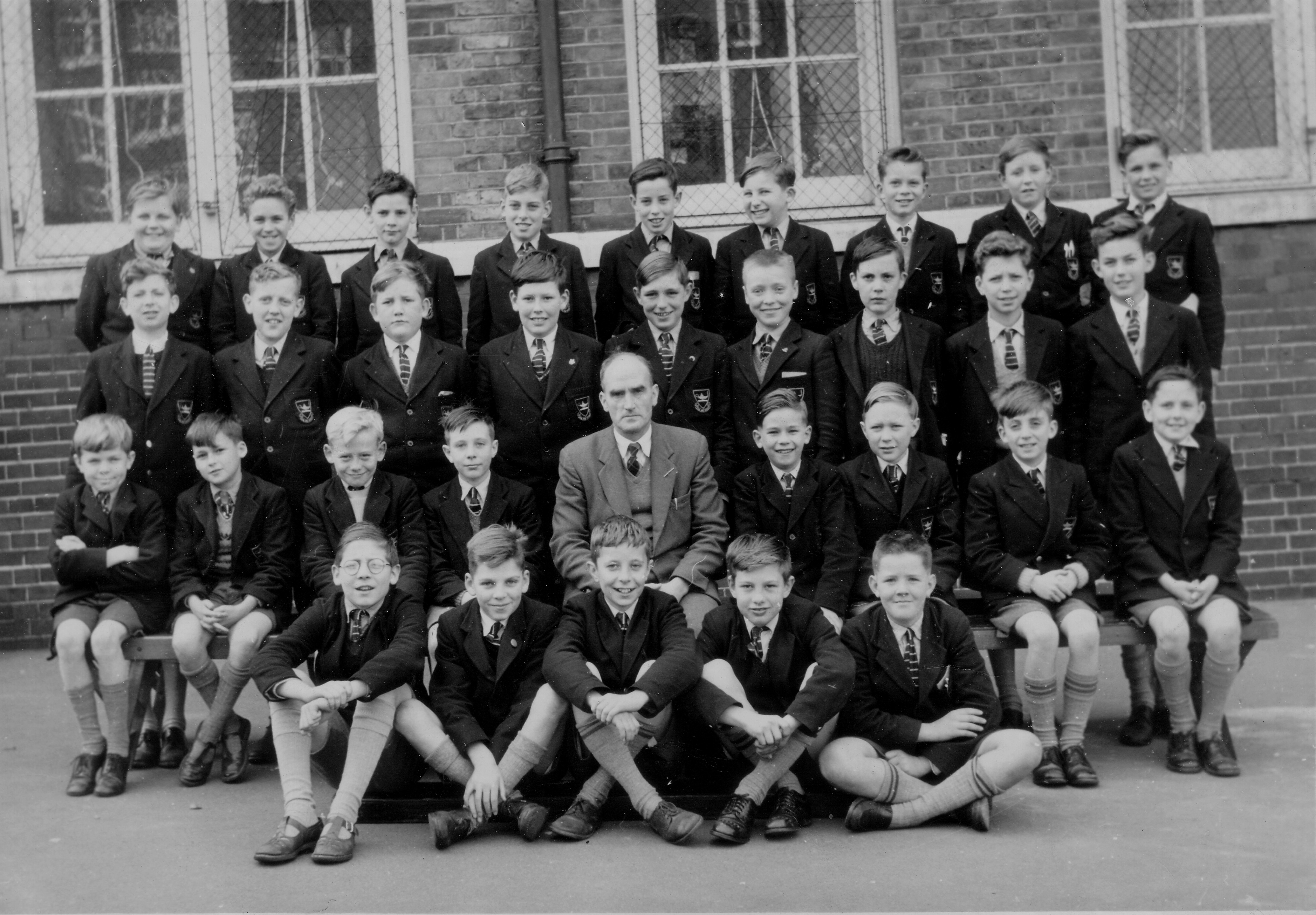 This was taken around 1958 at Bloomfield. The photograph background is in front of classrooms at the opposite end of the “playground” to that shown in your other published pictures of Bloomfield pupils.