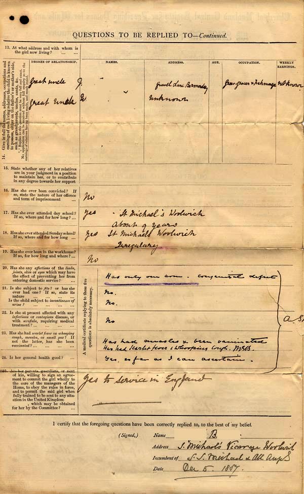1. Application to Waifs and Strays' Society 2 December 1887